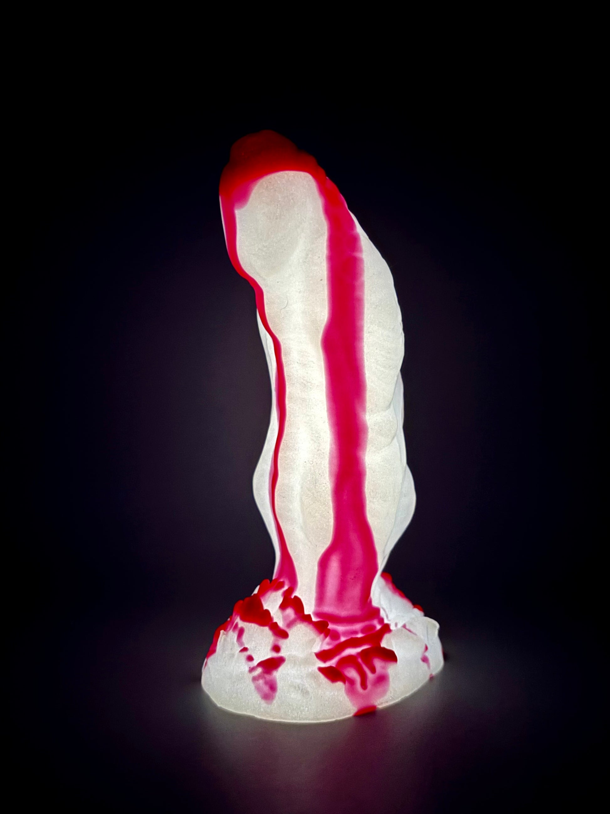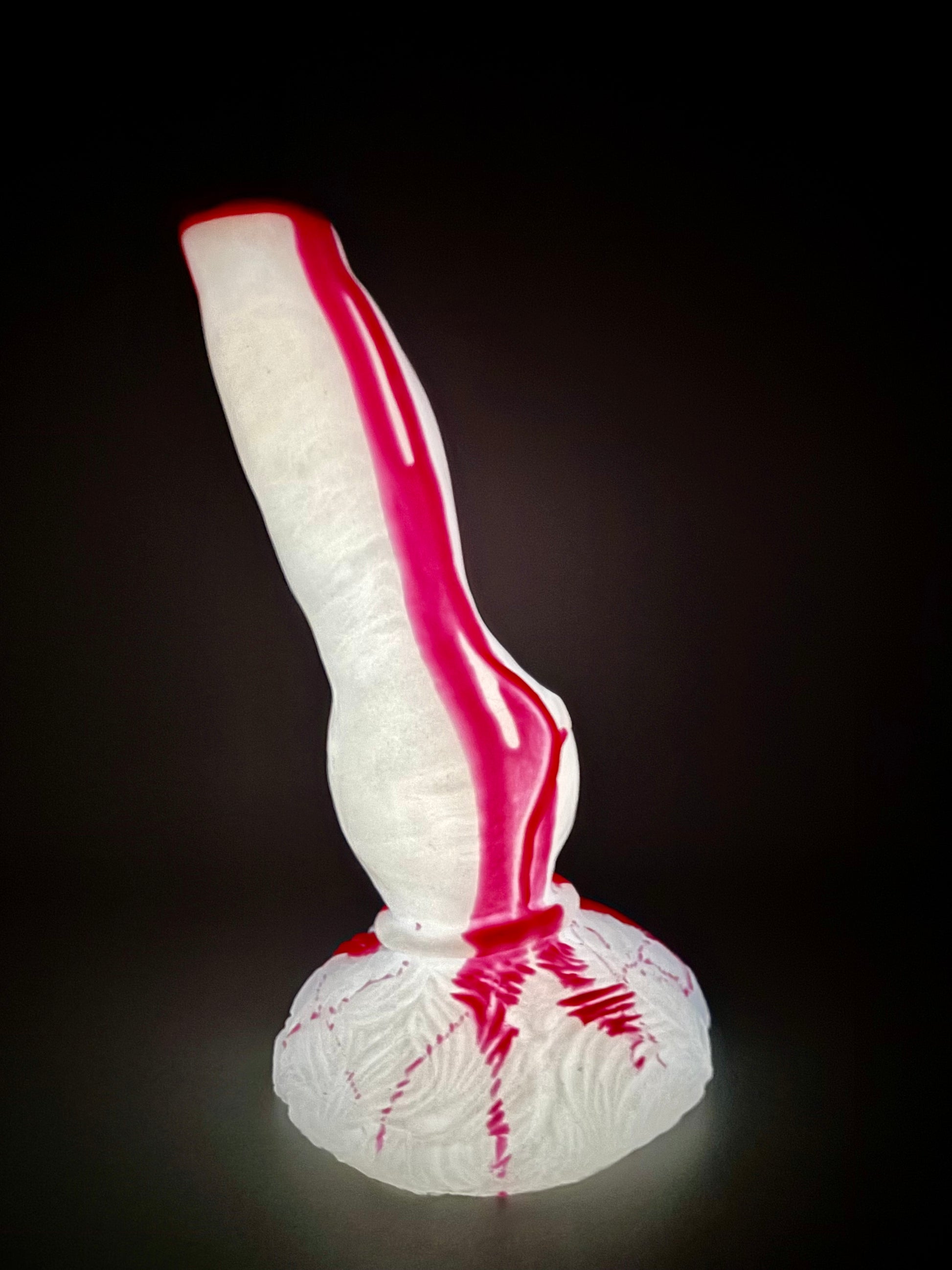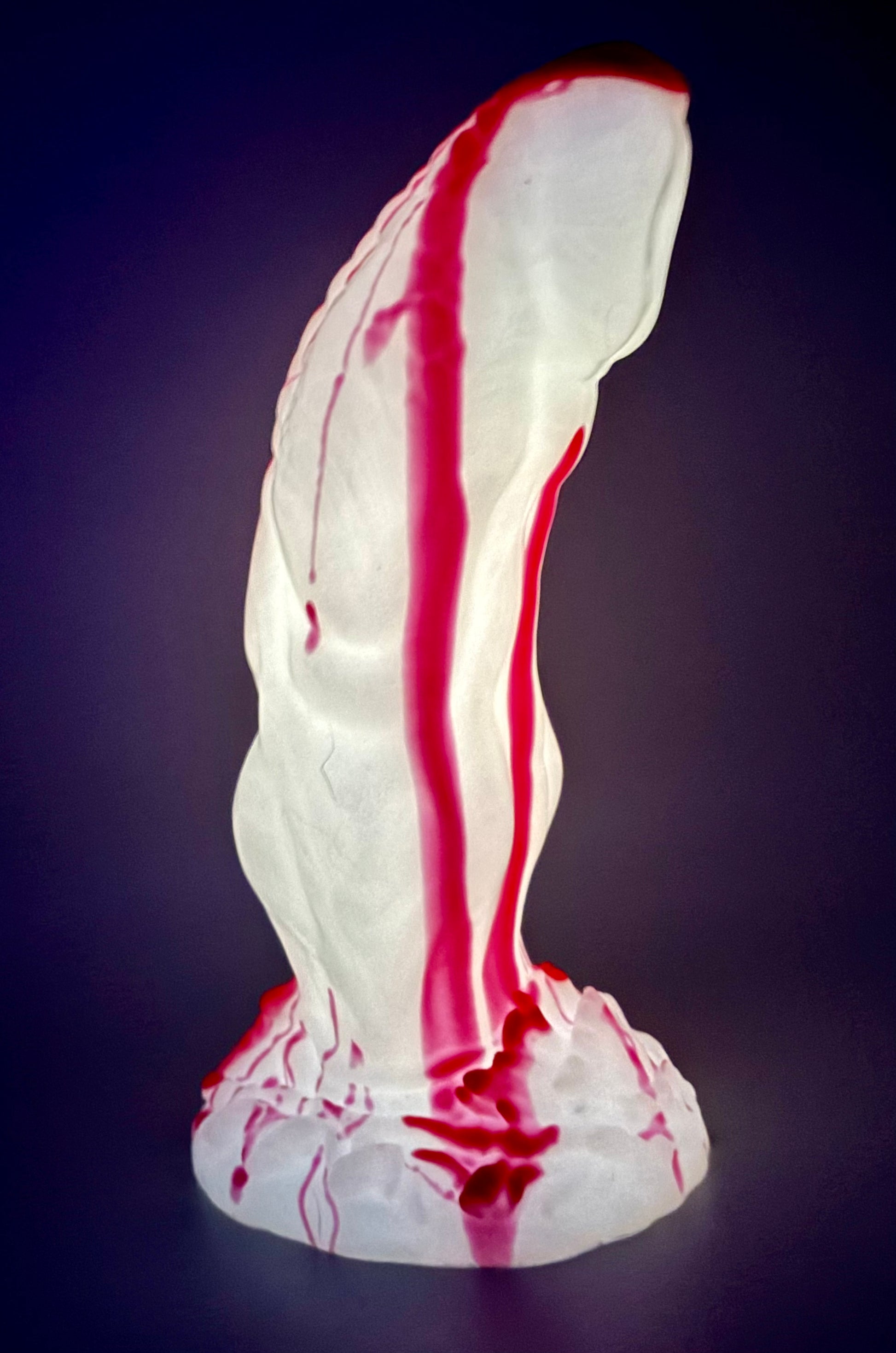 10-Trevor Medium SLASHER-Bright red drips of blood over a shimmery white shaft and base. GITD. MEDIUM firmness