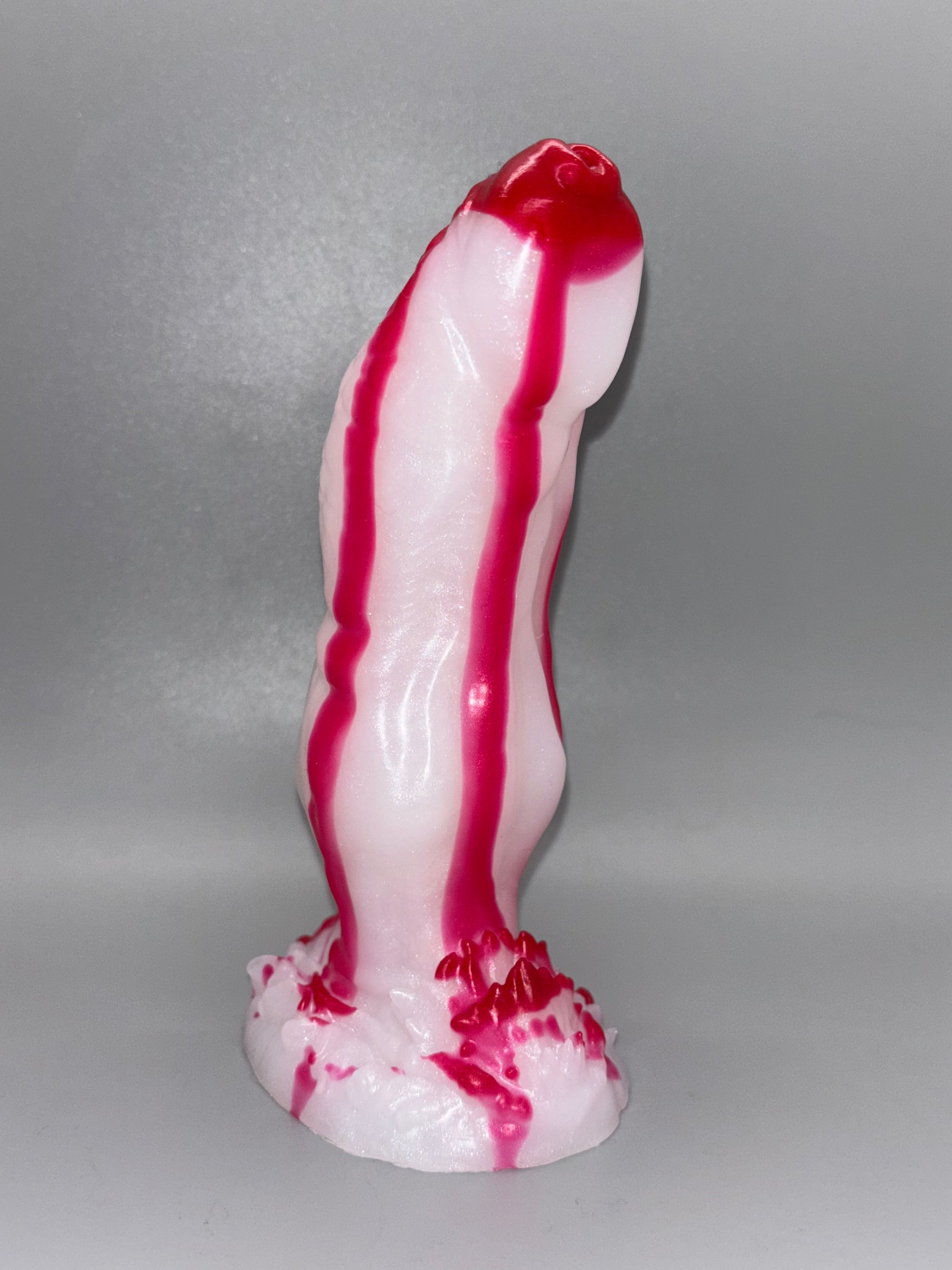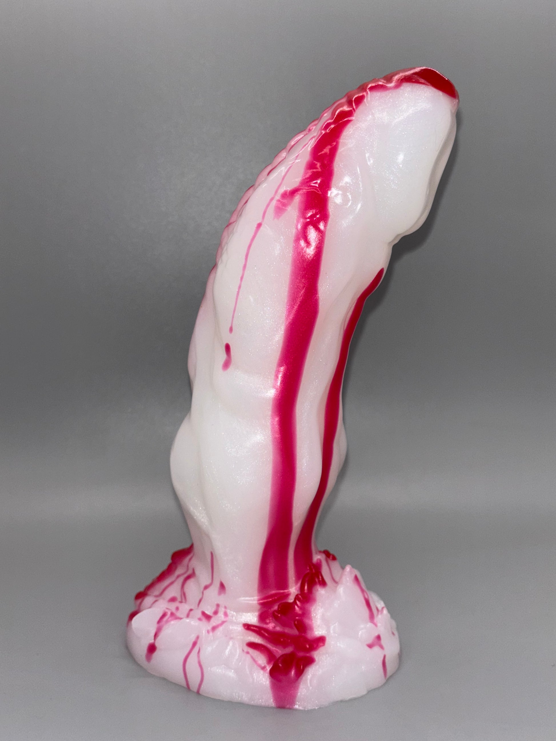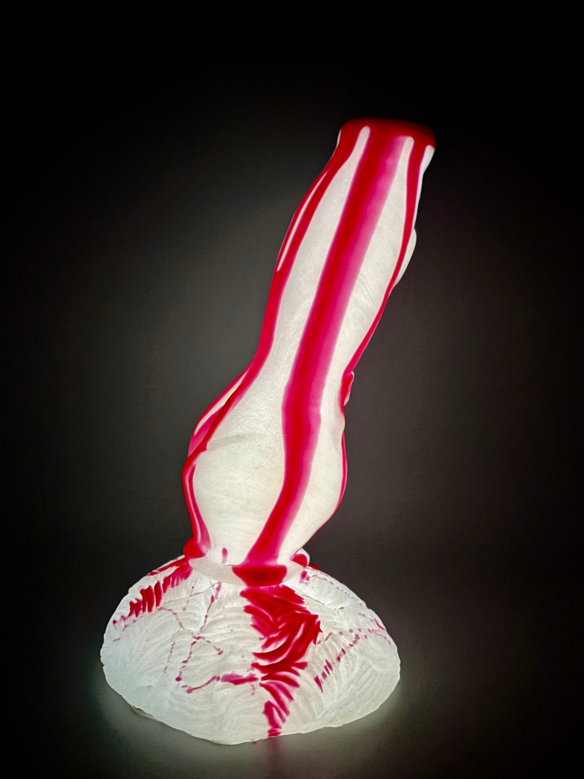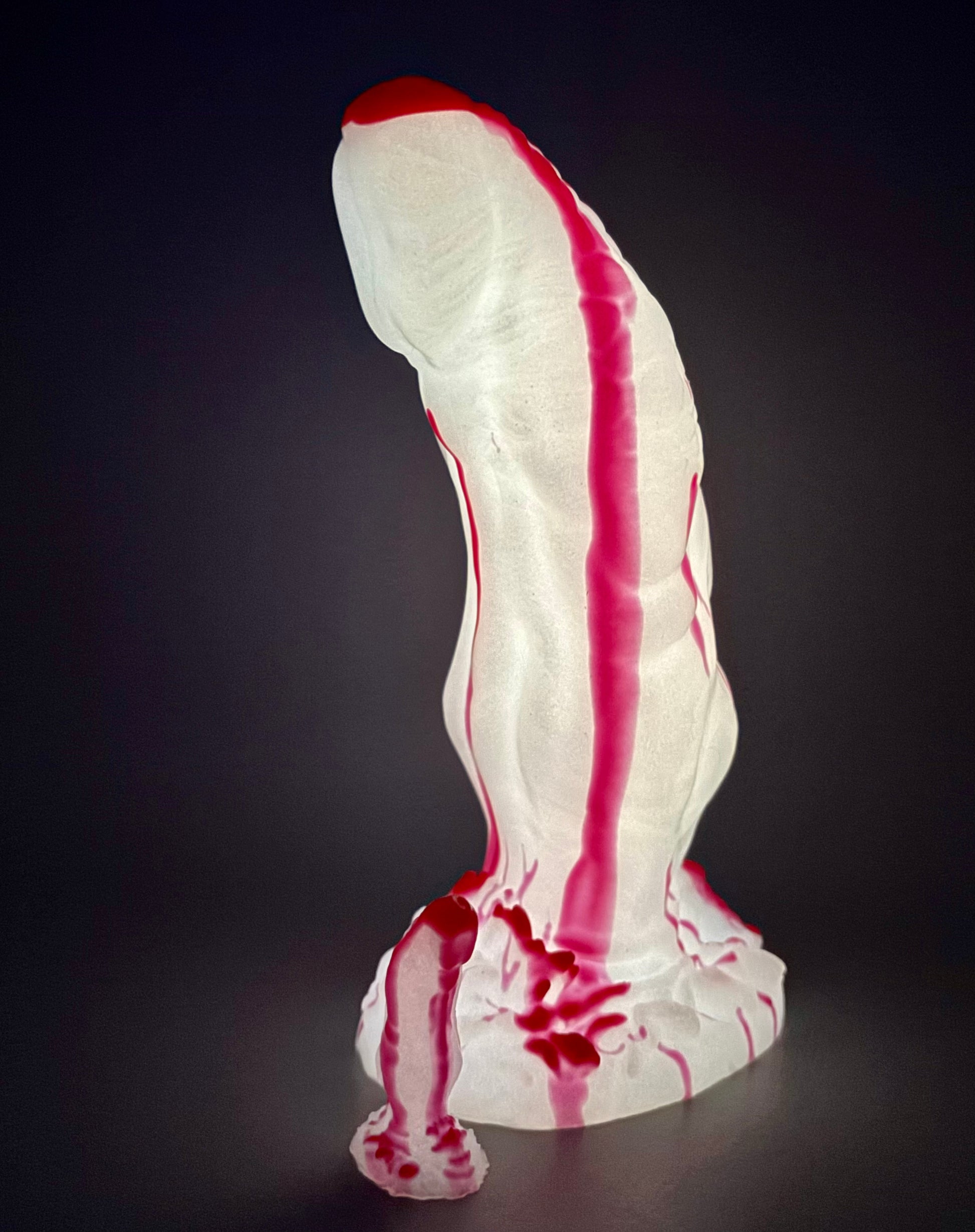 10-Trevor Medium SLASHER-Bright red drips of blood over a shimmery white shaft and base. GITD. MEDIUM firmness