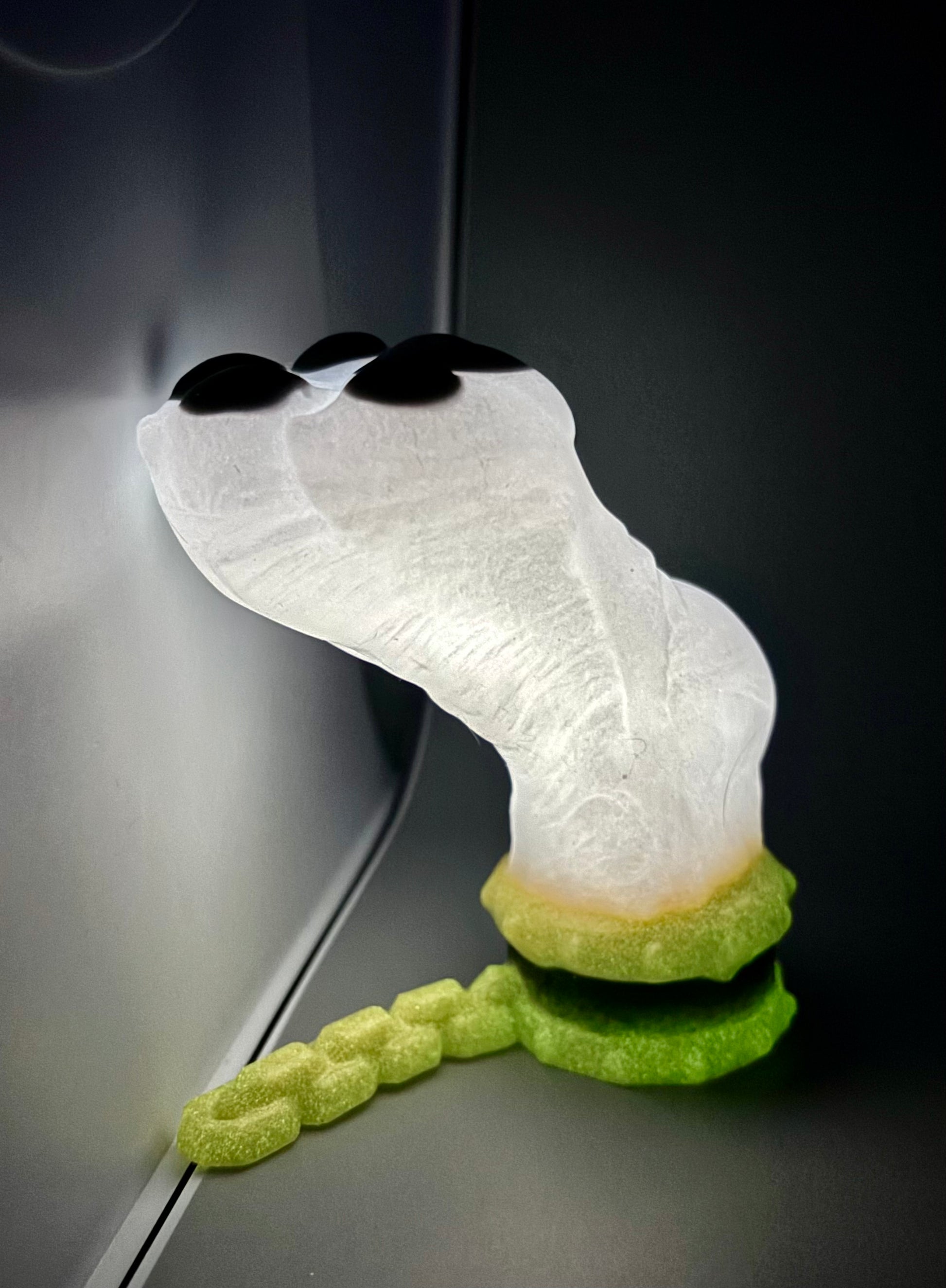 22-Randy GREEN LIPSTICK-A shimmery white ghost with green lips painted around his *ahem*. GITD. SOFT firmness