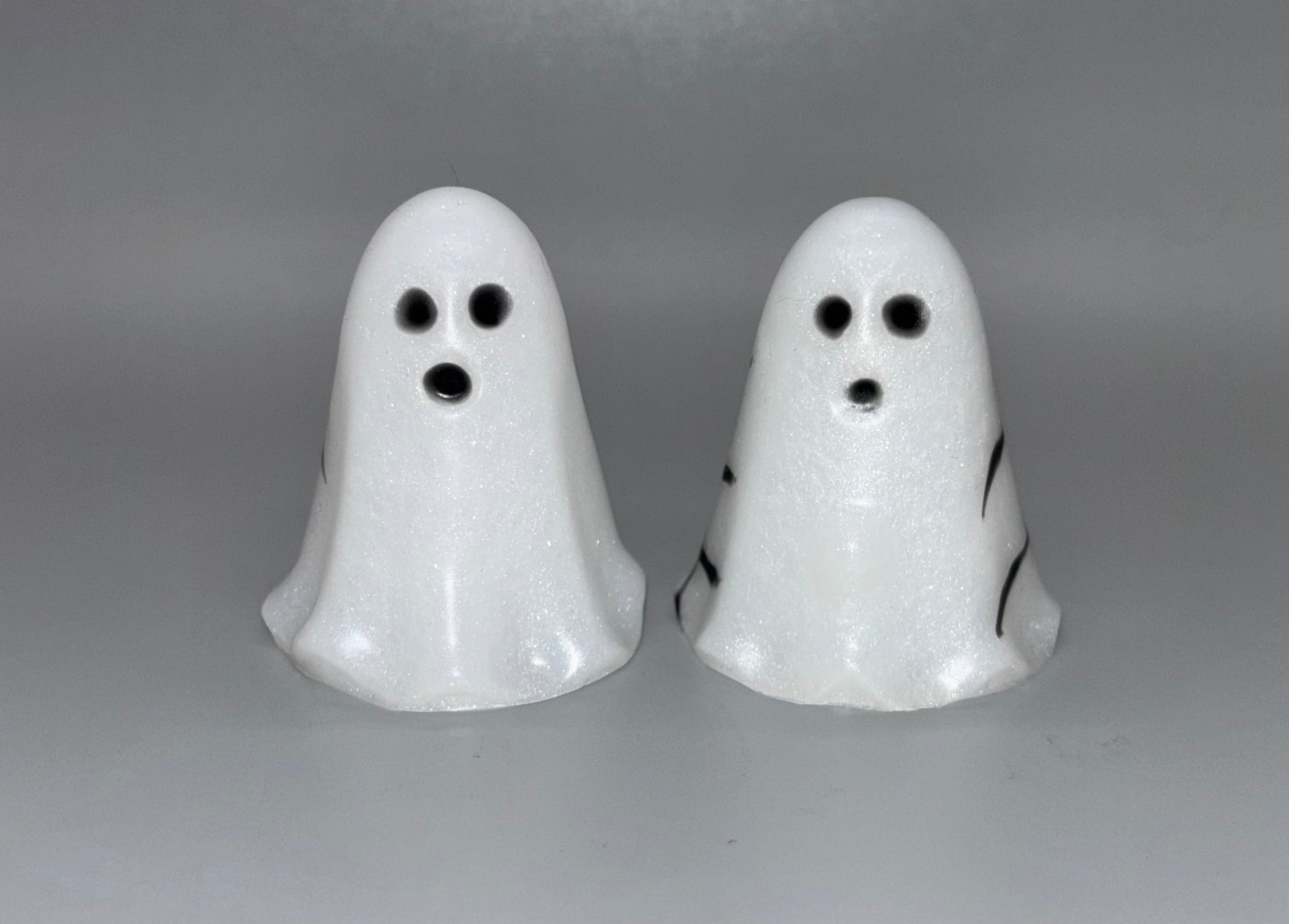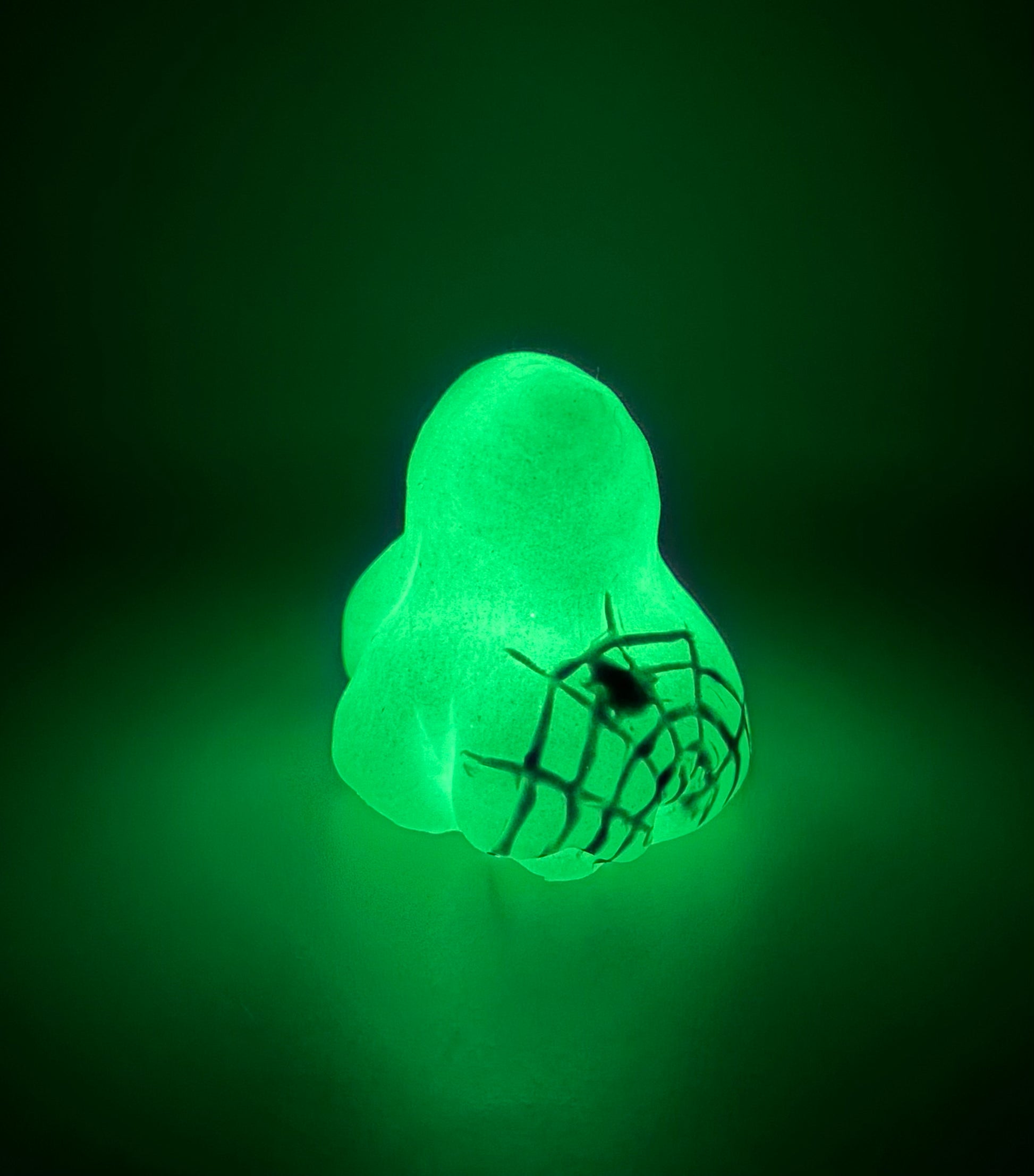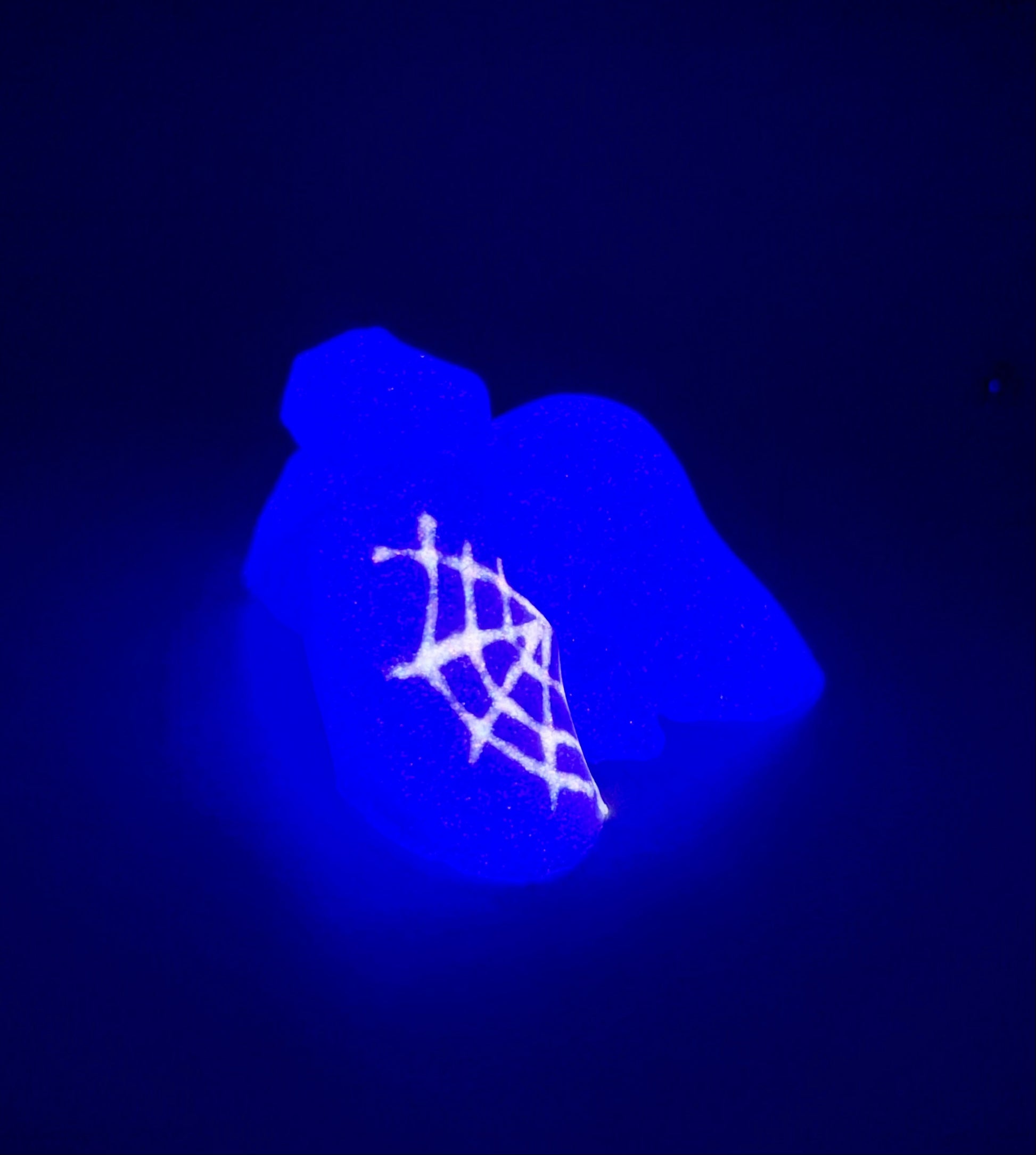 18-Cheeks & Randy SPIDERWEBS-A pair of white shimmery ghosts with black painted spiderwebs. GITD. SOFT firmness