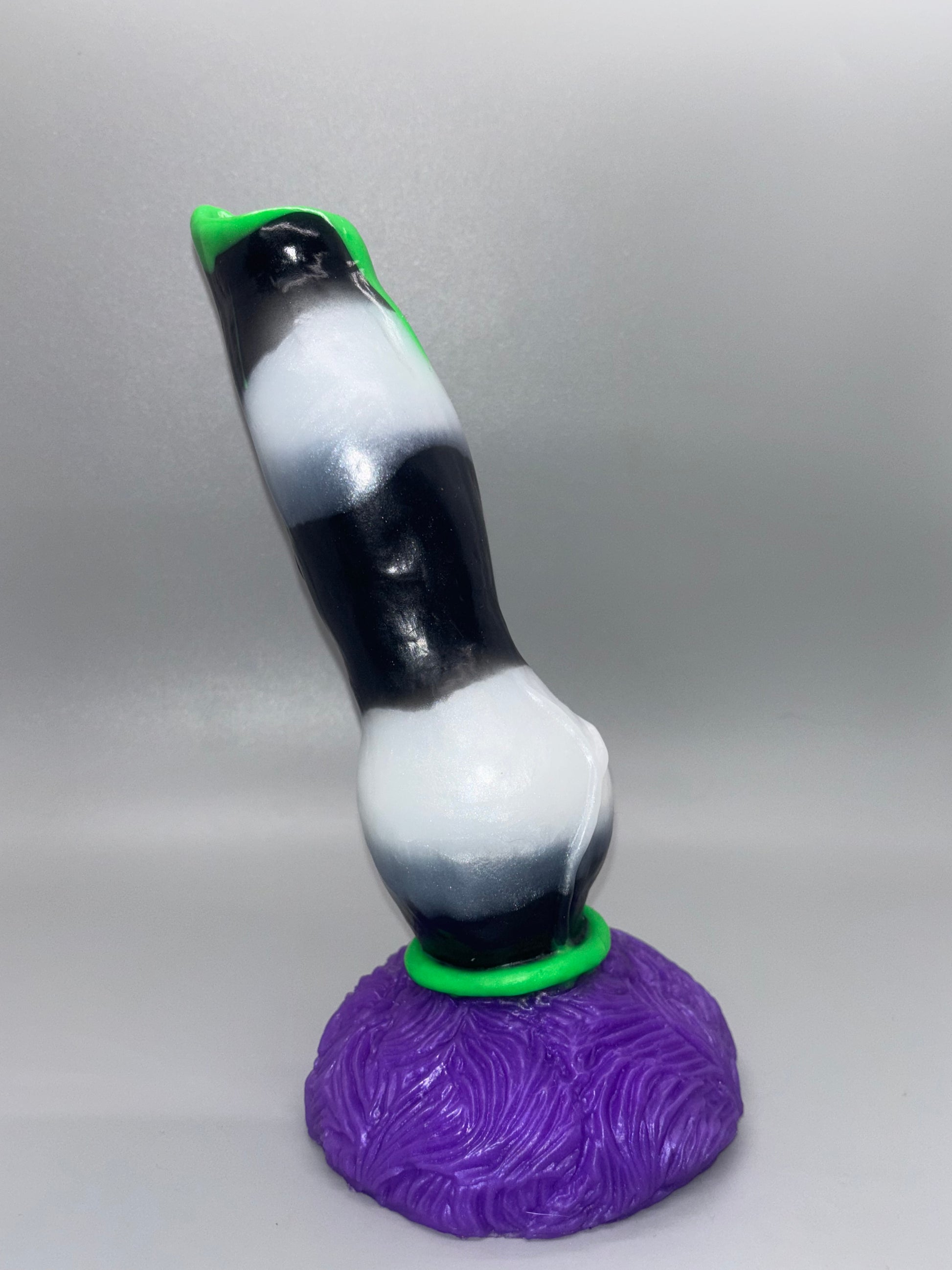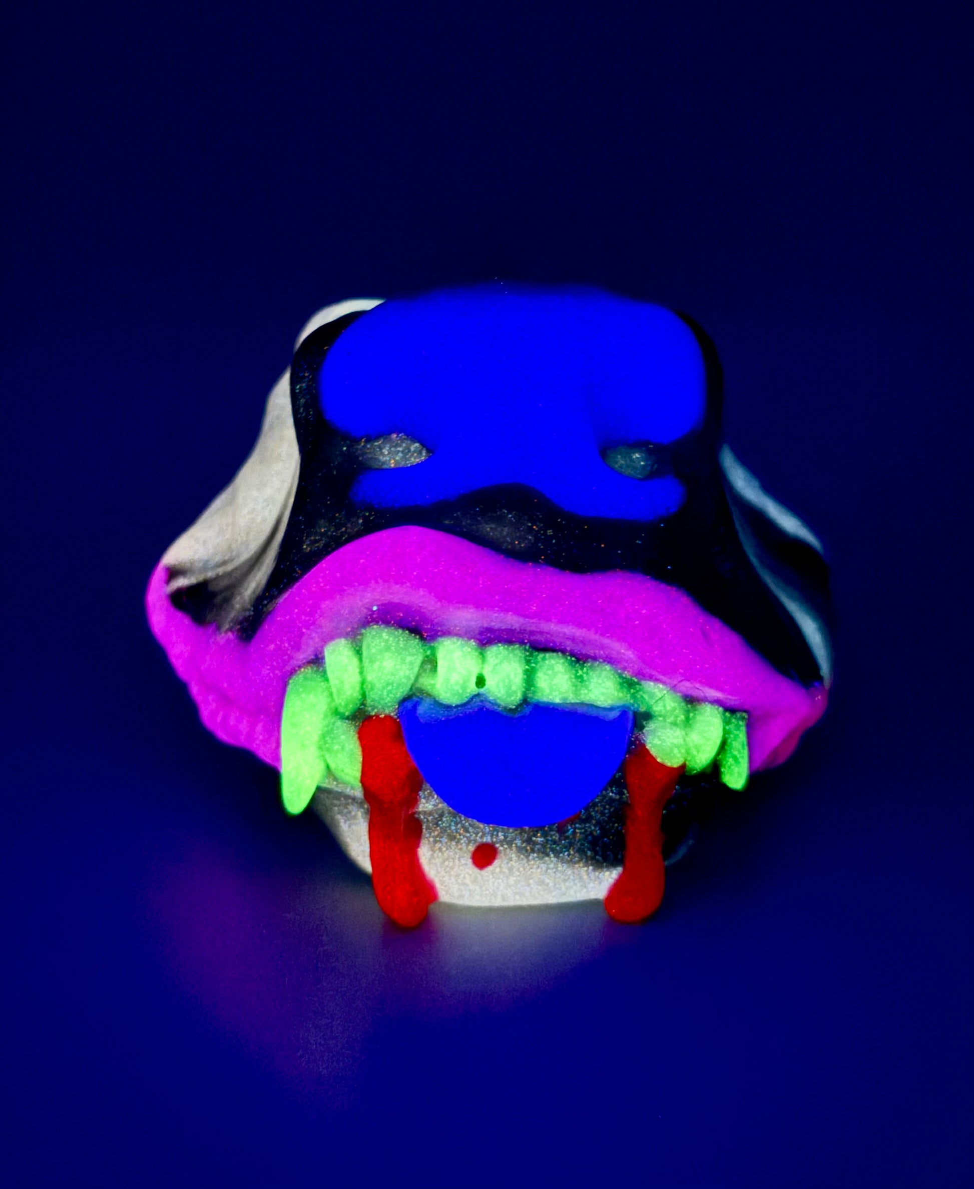 6-Kith with Drool Medium PURPLE SANDWYRM FLOP-A dark purple nose and tongue hue, light purple lips and Β freckles, and a black and white swirled snoot. GITD. DISCOUNTED for bubbles on lip. SOFT firmness