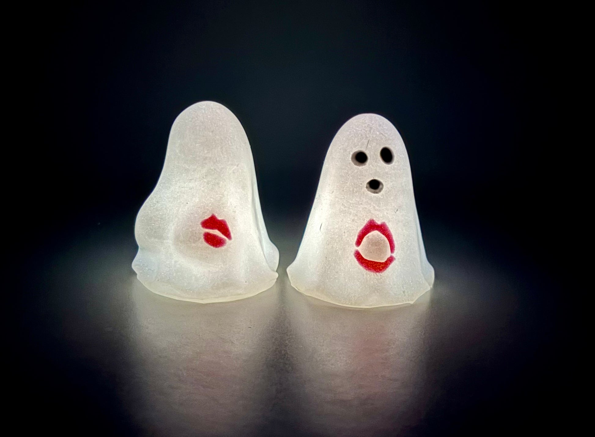20-Cheeks & Randy RED LIPSTICK-A pair on white shimmery ghosts with bright red lips painted on some naughty places. GITD. SOFT firmness