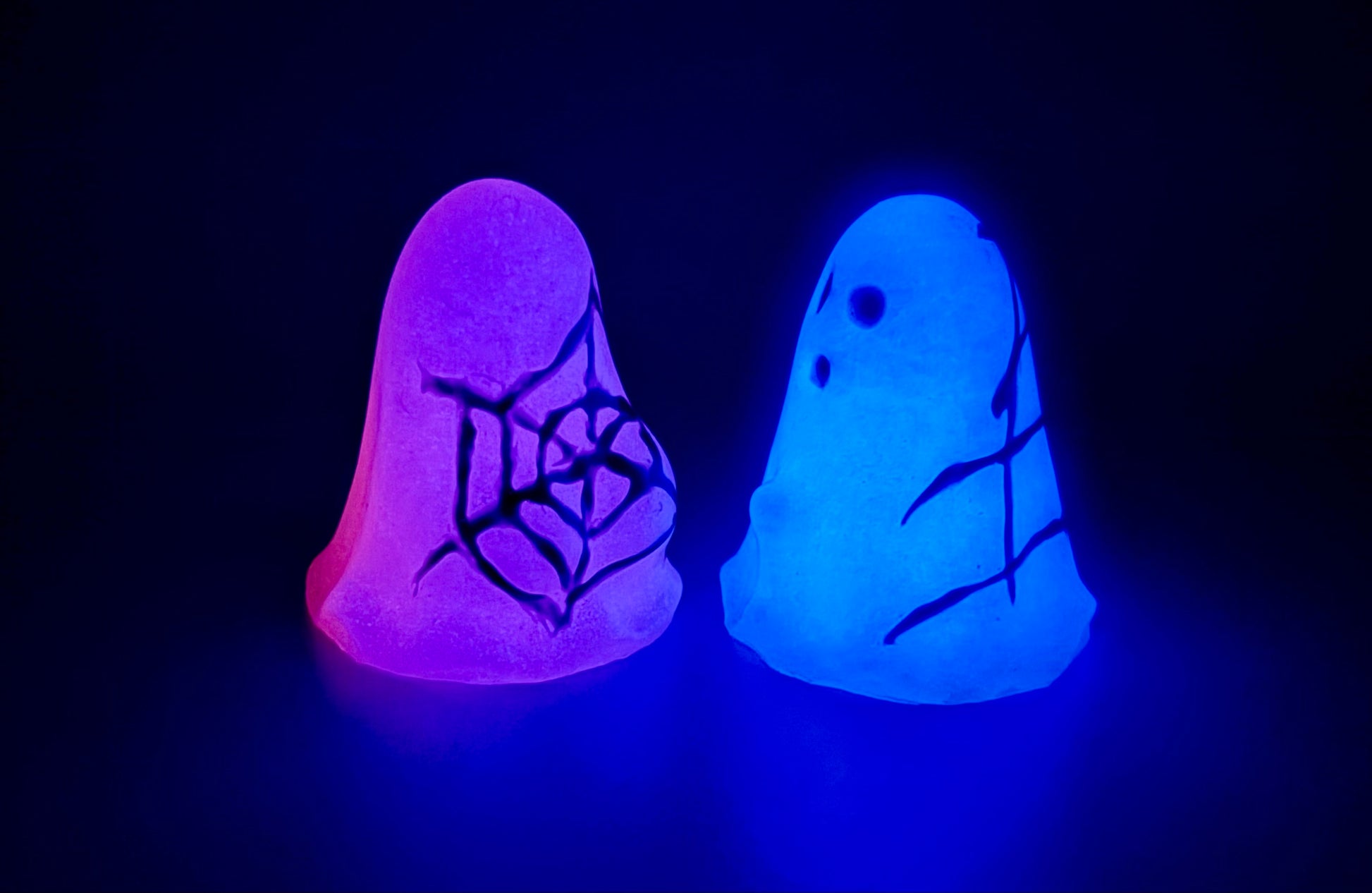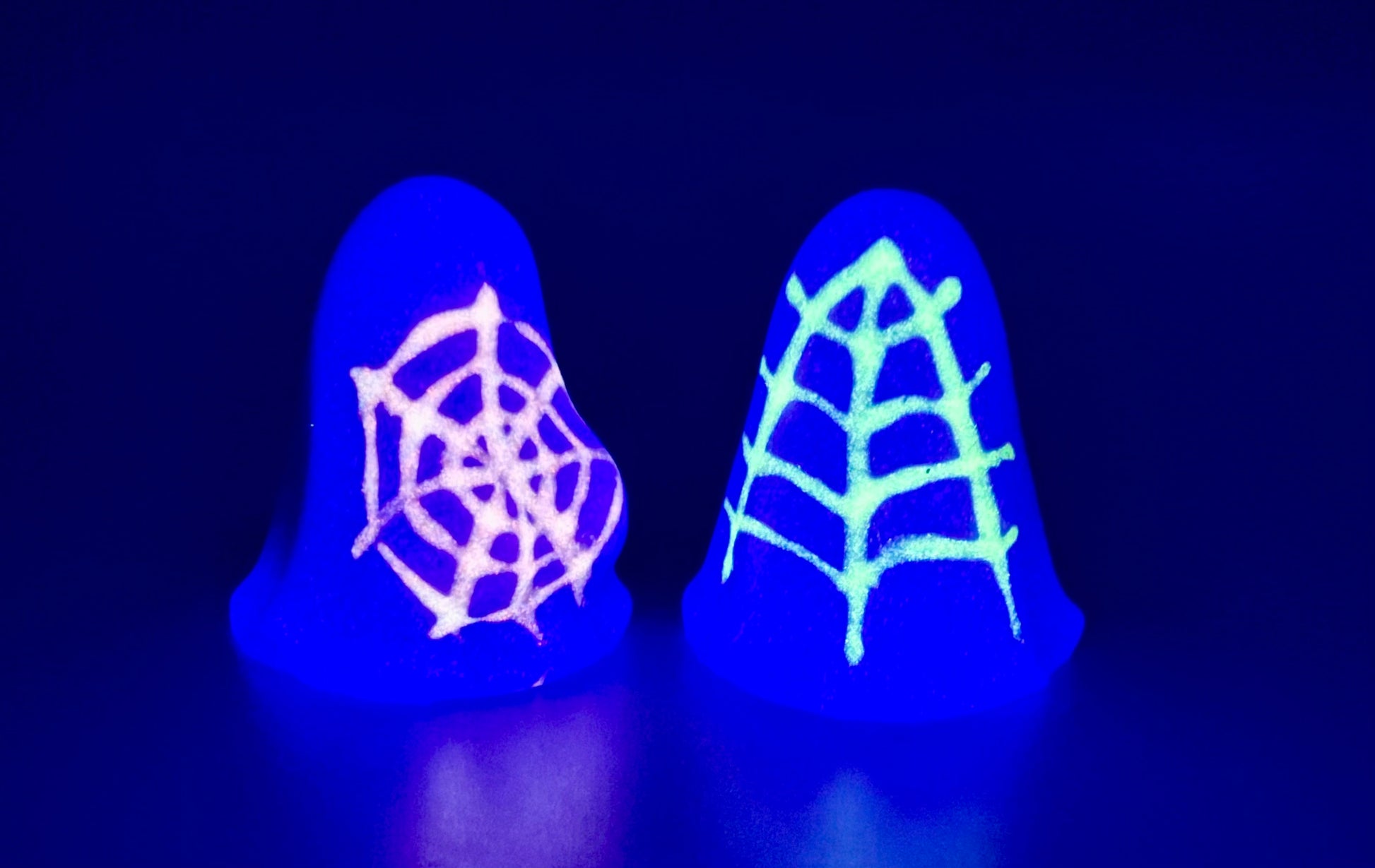 19-Cheeks & Randy VIOLET SPIDERWEBS-A pair of purple shimmery ghosts with white painted spiderwebs. GITD. SOFT firmness