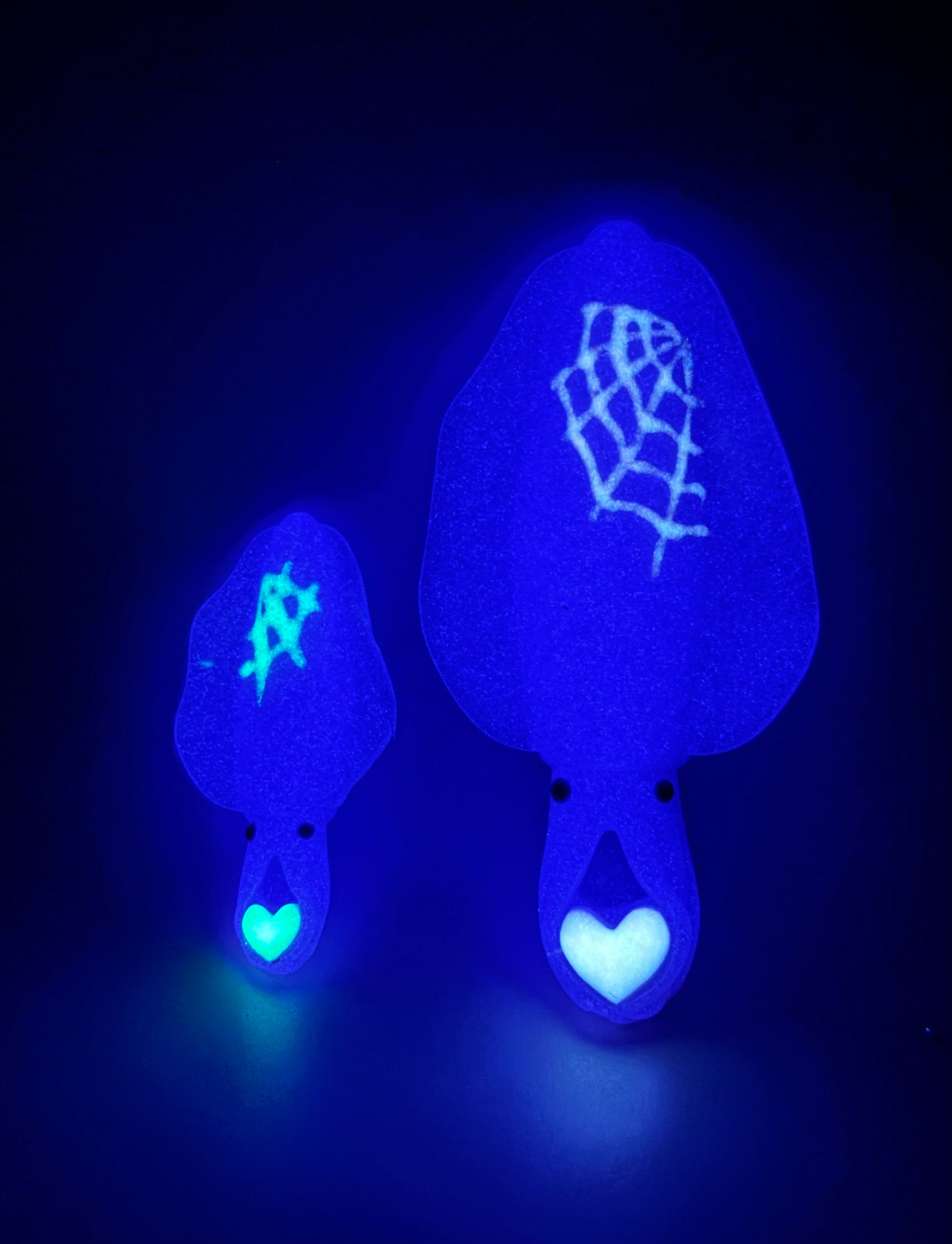 31-Apama & Pfefferi VIOLET SPIDERWEBS-A pair of purple shimmery cuttlefish with white painted spiderwebs and hearts. GITD. SOFT firmness